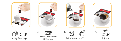 Experience tranquil coffee moments by bringing Asian Traditonal Roast coffee into your cup. Expertly roasted and individually protected in an air free pressurized foil to keep its freshness and authentic aromas. Simply dip it in hot water to get a pot of great ‘Cup of Joe’, Black Coffee, Coffee Tarik, or Vietnamese Coffee.