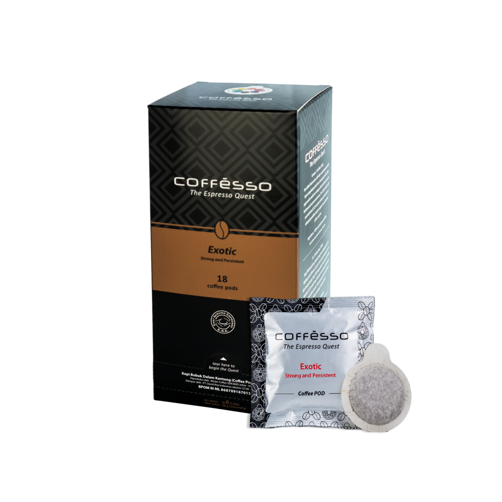 Strong and Persistent. “Exotic” is one of Coffesso’s house blends. It is an excellent multi-region blend of first-class row Arabica and Robusta beans selected from its best origins, and is slowly roasted separately, mixed into a perfect blend. Exotic has a rich body and aroma with a hint of caramel. It leaves a strong and balance mouth feels with an elegant dark chocolaty note.
