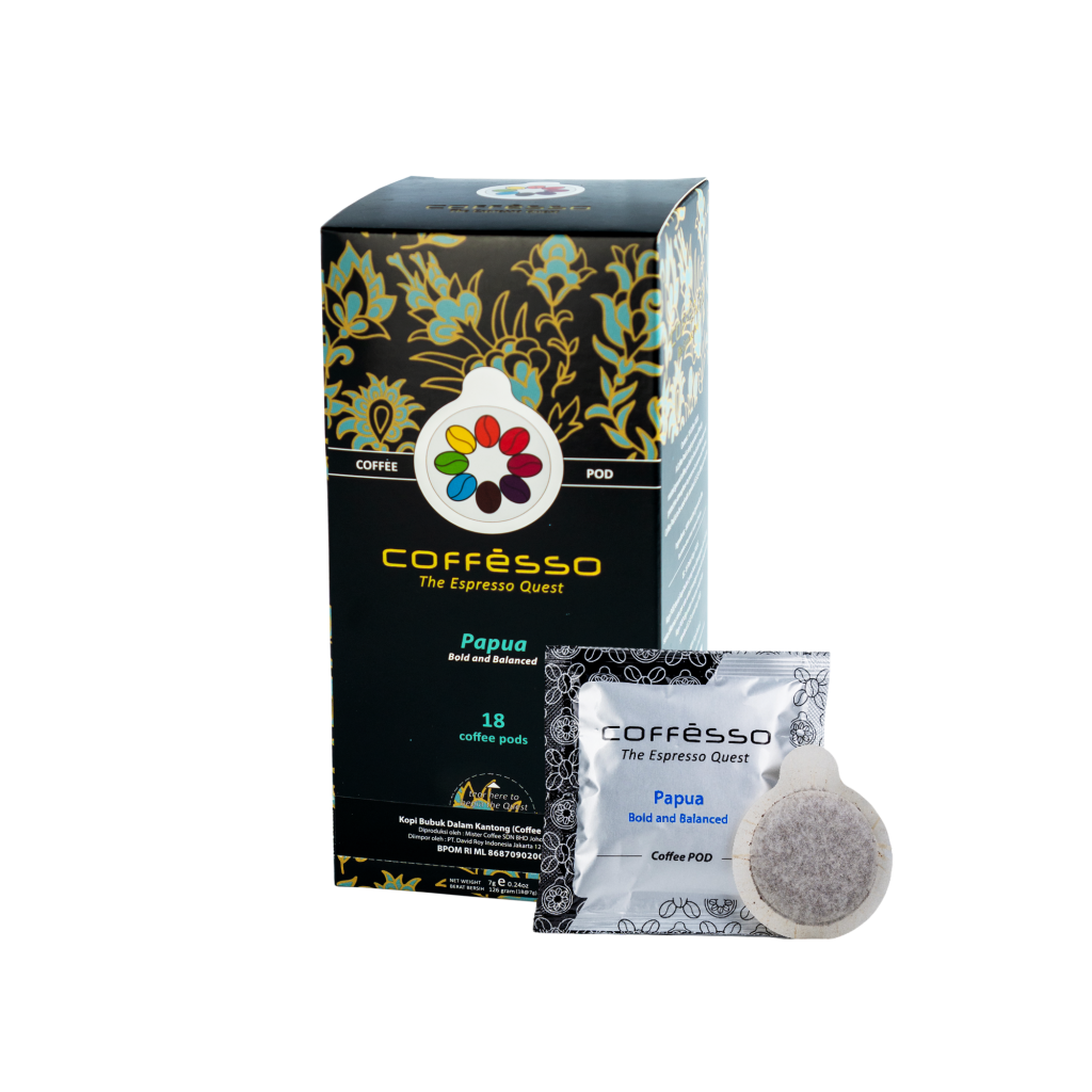 Bold and Balanced. Nourished by Mother Nature, the ‘blue mountain’ coffee beans of Papua are grown on the highland mountain plateau of Wamena, Indonesia. It has a very bold, brilliant and fruity note, along with a buttery crema.