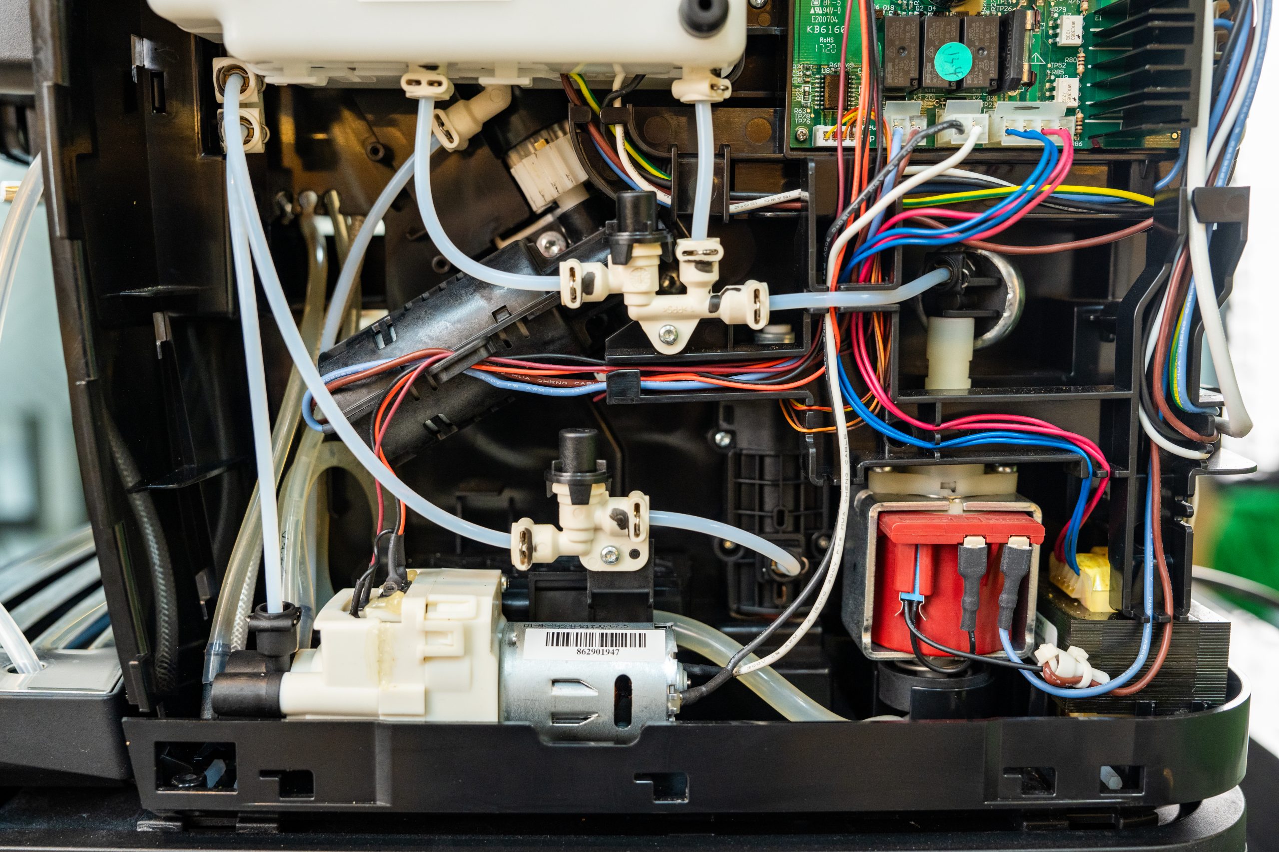- Dual heating system includes a separate element to generate steam for quick cappuccino and latte.